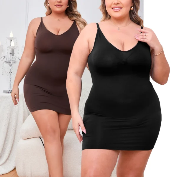 Women Shapewear Underwear Slip Dress V Neck Full Slip Plus Size Body Shaper Tummy Control Shapewear